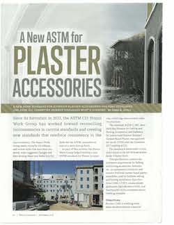The September 2018 issue of Walls and Ceilings magazine features an article highlighting that a new ASTM Standard for Exterior Plaster Acccessroies has been developed.   Chris K. Little, Senior Product Manager for ClarkDietrich and a ASTM C11 Stucco Work Group member, discusses what has changed.  The article is posted on Walls and Ceilings website: https://www.wconline.com/articles/91831-a-new-astm-for-plaster-accessories?v=preview.
