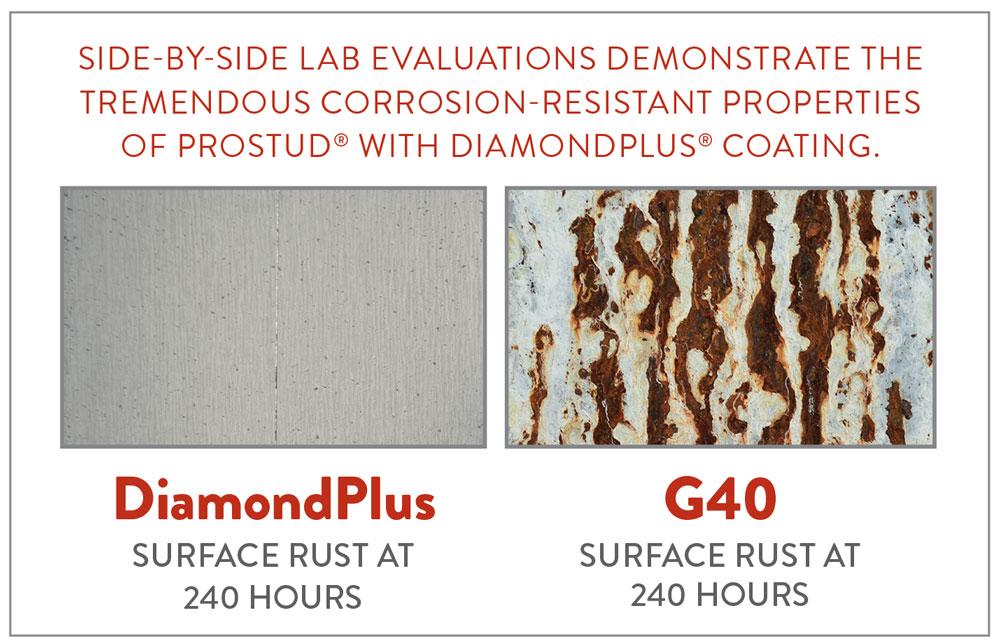 While standard G40 studs are accepted by many as the industry standard for interior steel framing, ClarkDietrich also offers ProSTUD with DiamondPlus coating—the next generation of high-performance, code-compliant steel framing systems.