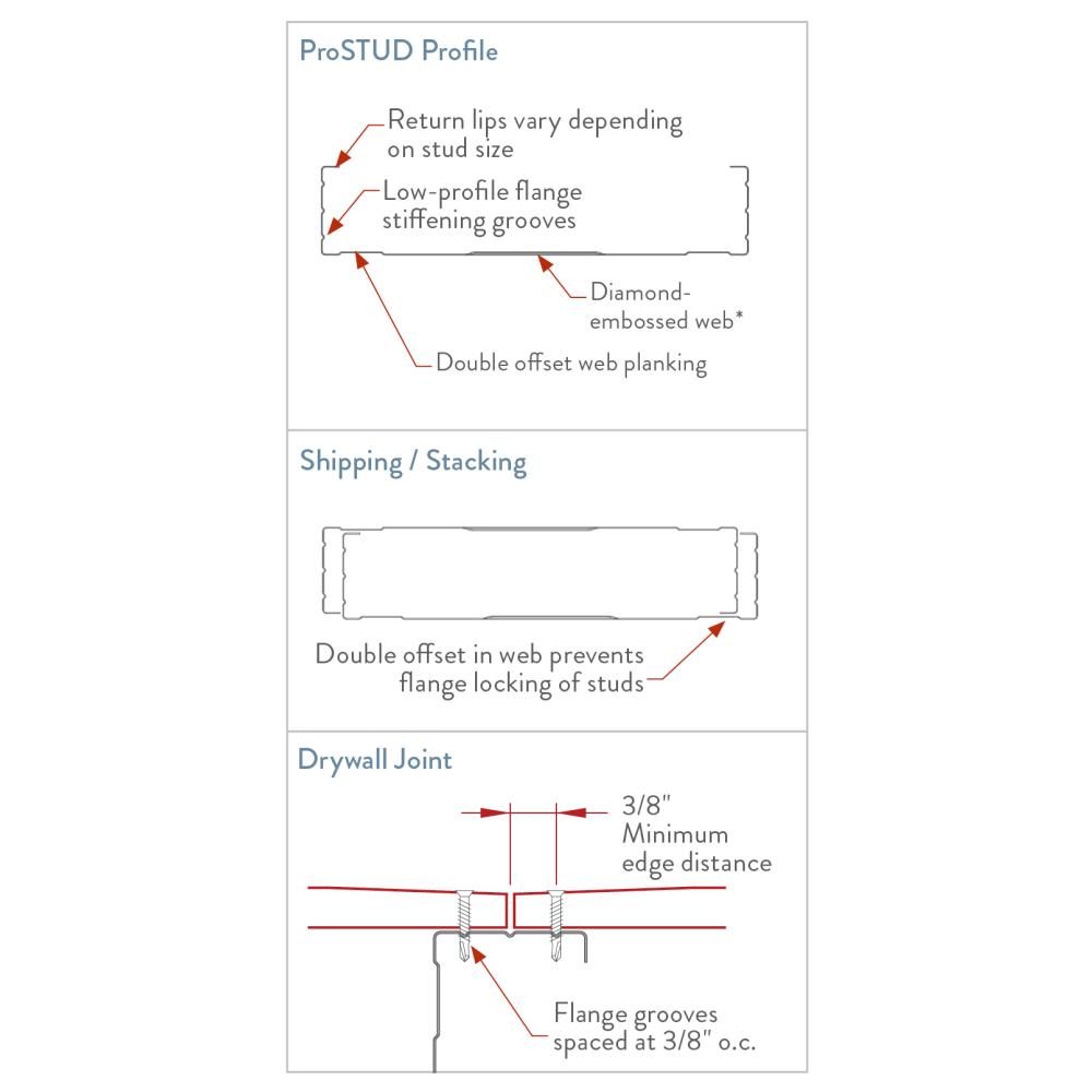 - Diamond embossed web creates stiffness, reducing flange fade and screw spinout during drywall installation