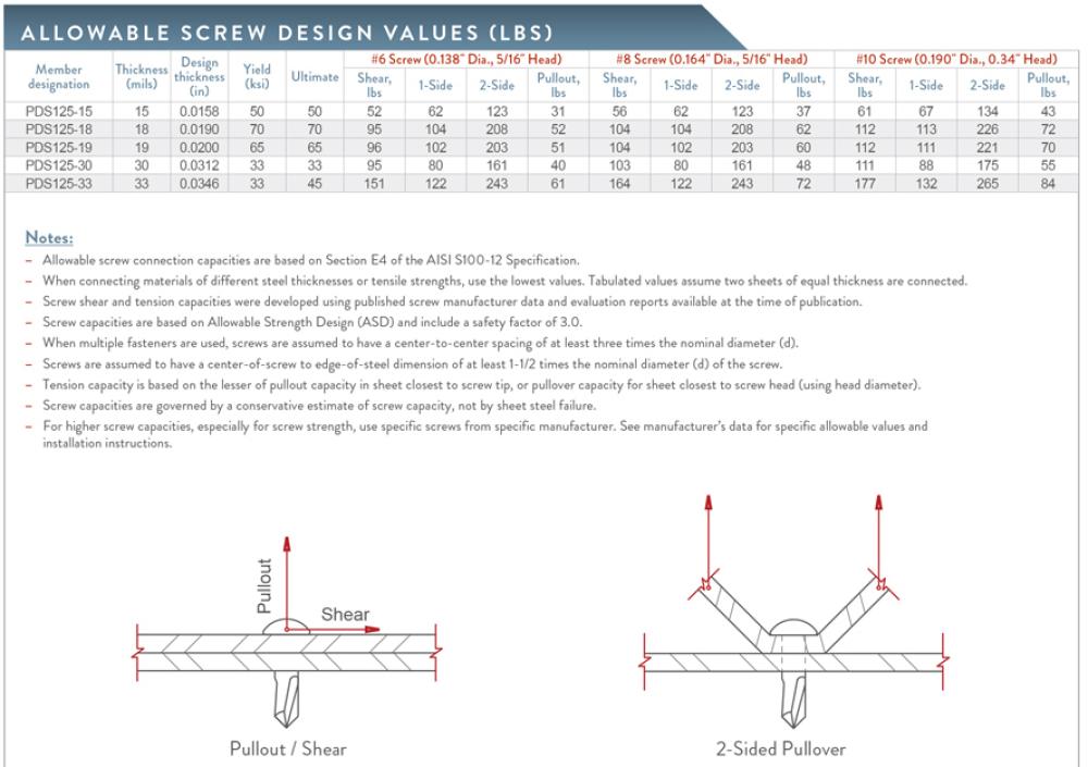 Non-Structural (ProSTUD) - Screw Allowable Loads
