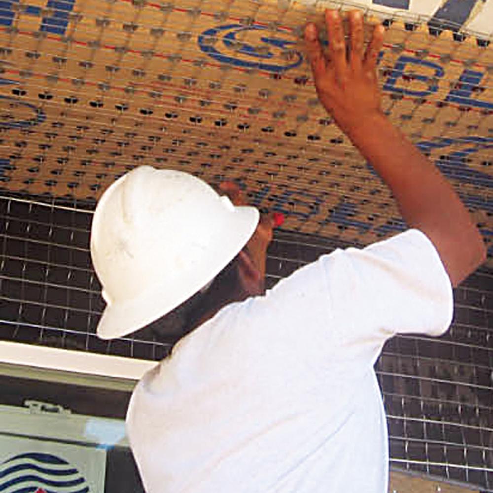In the past, applying stucco overhead has meant contending with falling stucco, poor embedment, and cracking. At Structa Wire, we have eliminated these frustrations with the design of a unique sheet product. V Truss for Walls & Ceilings, also known as Structa Rib Lath, features key elements that work together to provide easy installation, decreased fall-out and a smooth 'crack-free' soffit. The product was refined and improved through a series of field trials. It was so well received that a contractor claimed that this product would "revolutionize" the stucco industry.